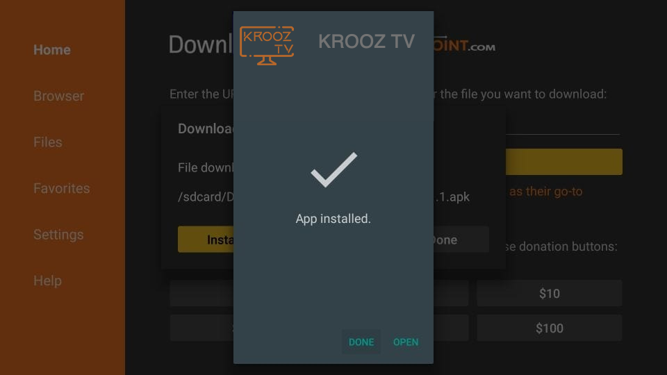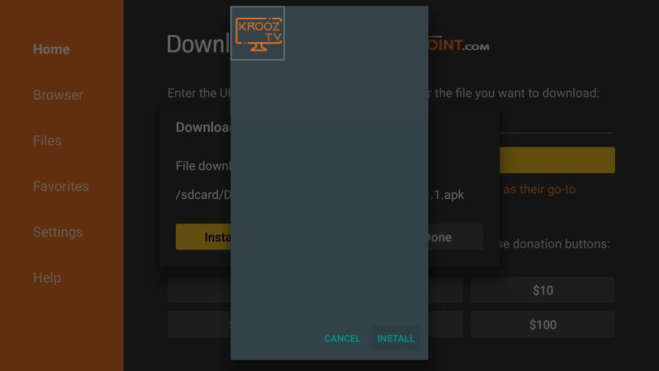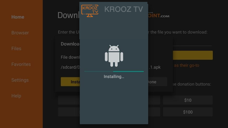 Give it a minute or two until the Krooz TV app is downloaded onto your FireStick device